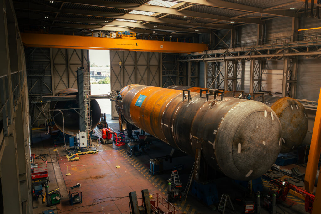Voor een internationaal carbon capture & storage-project moest het bedrijf acht drukvaten van 7,2 m diameter en 34 mm wanddikte produceren binnen één jaar. Een opdracht die om maximale efficiëntie vroeg.